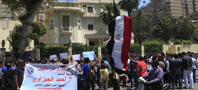 Αιγύπτιοι πραγματοποίησαν διαμαρτυρία έξω από την πρεσβεία για τη σύλληψη ενός Αιγύπτιου δικηγόρου και ακτιβιστή των ανθρωπίνων δικαιωμάτων στο βασίλειο.